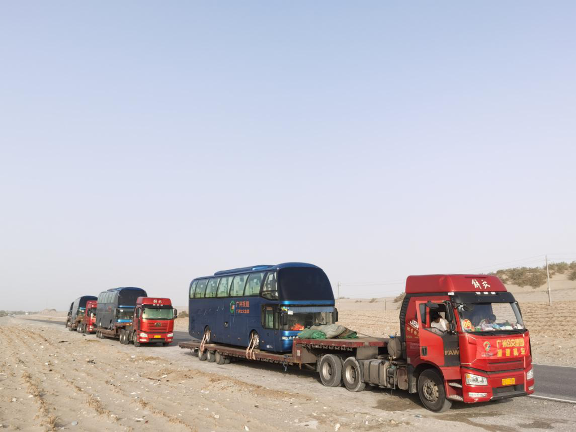 針對本次援疆任務,廣州公交集團領導們寄語大家務必要提高政治站位、增強“四個意識”、充分發揮廣州公交援疆隊伍的優良作風、發揚吃苦耐勞的精神,為喀什產業園區社區員工上下班交通作出積極貢獻。面臨時間緊、距離遠、路況復雜三大難題,出發前,集團群眾工作部牽頭,巴士管理部和生產經營部等部門配合,火速組織屬下二汽公司、長運公司和運輸公司等三個單位的負責人召開了溝通會議,組建一支援疆捐車工作隊。該工作隊主要由運輸公司黨員干部負責全程護送,含8名管理人員和48名司機,配備22臺運送車輛,爭分奪秒為入疆運送捐贈車輛保駕護航、賦能提速。