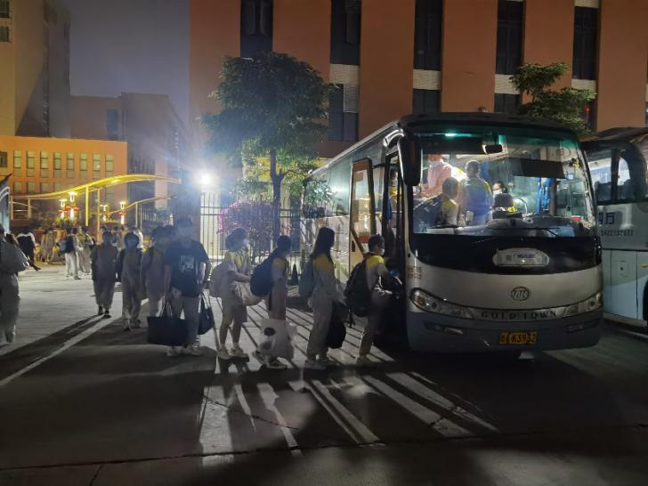 4月9日凌晨,巴士集團粵港澳公司天河防疫轉運隊伍也連夜進入了“一級”備戰狀態,精心篩選了40臺轉運運力,并將隊伍分成了日班組、夜班組、深夜組三組,確保24小時運轉有序。隨著防疫任務的不斷增加,首批夜間組的運力已經出現緊張,而指揮中心調度人員接連不斷地收到一個個“特殊”來電:“天河轉運隊伍賓廣坤已完成轉運任務并做好消殺工作,可以繼續執行任務……”越來越多的車長加入了二次轉運,“天河轉運任務三車長付金波已完成任務,可以二次轉運、任務九何劍雄已完成轉運任務可以二次轉運……”4月9日凌晨時段,轉運隊伍的車長們披星戴月“戰”到了天明,只一個凌晨,便完成了26班次的轉運任務。