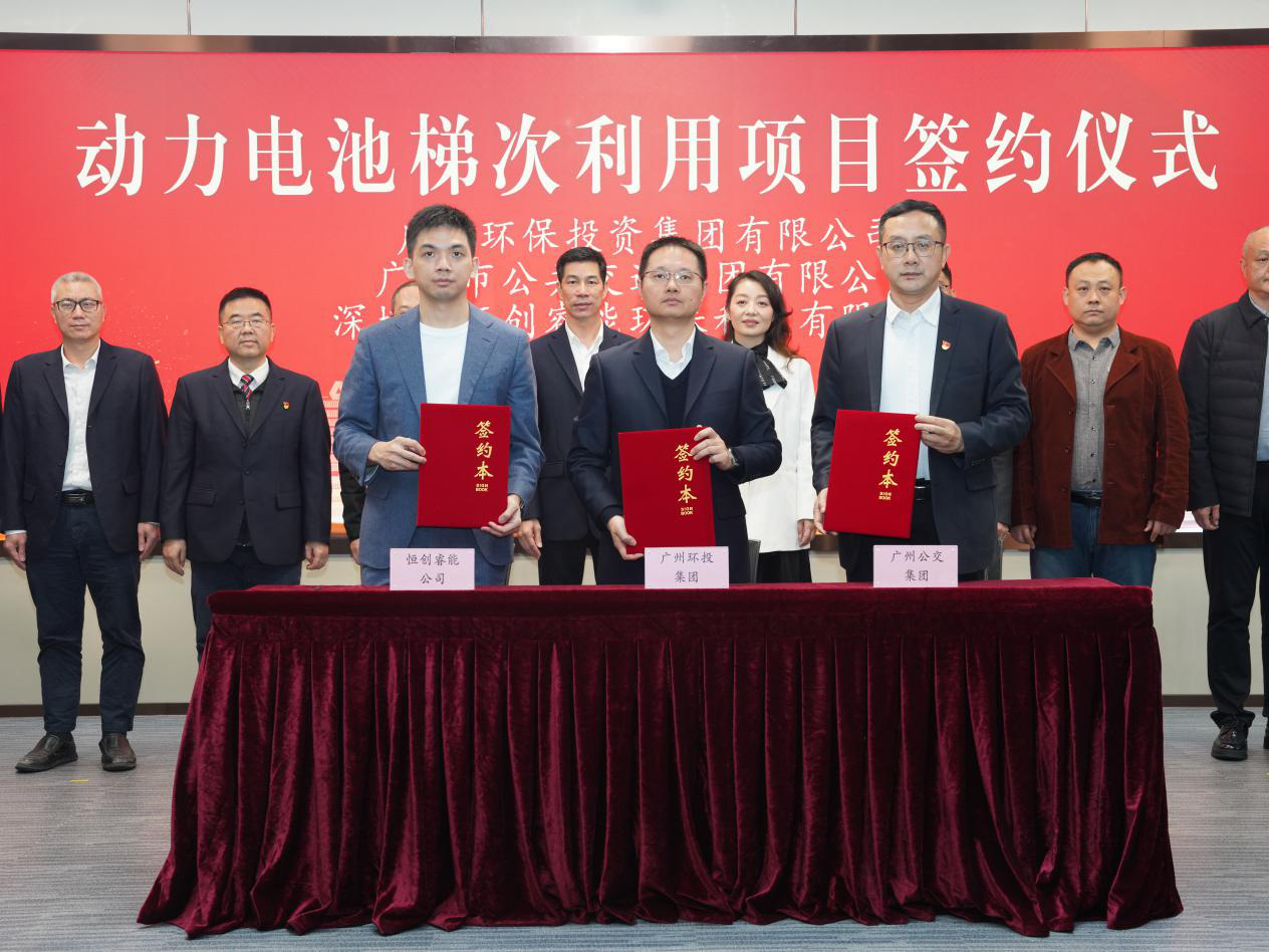 近日,廣州市公共交通集團有限公司與廣州環保投資集團有限公司、深圳市恒創睿能環保科技有限公司簽訂合作協議。廣東省工信廳工業節能和綜合利用處李敬斯處長,廣州市國資委黨委委員、總經濟師郭黎;廣州公交集團黨委委員、副總經理林殿盛,總經理助理鄧志誠;廣環投集團黨委書記、董事長李水江,副總經理周衛東;深圳恒創睿能公司董事長陳志鵬等出席簽約儀式。