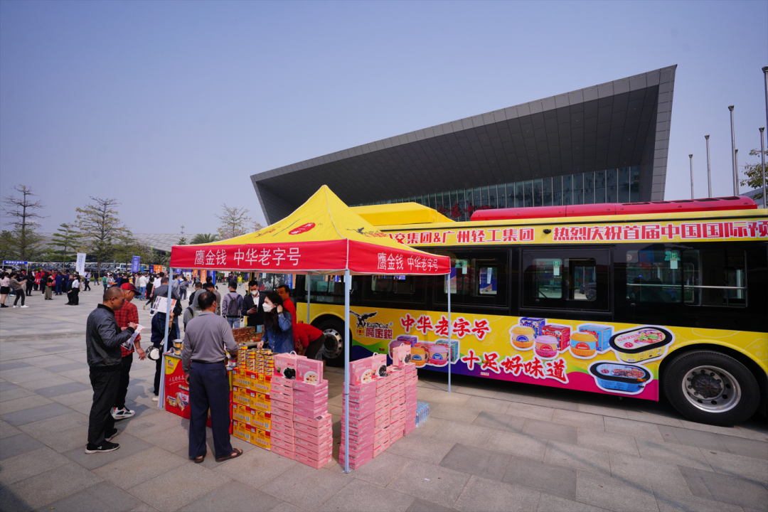 為更好地展示廣州老字號(hào)品牌“鷹金錢”的產(chǎn)品,廣州公交聯(lián)合輕工集團(tuán)特別定制主題公交餐車,別出心裁地將公交車廂改造成為沉浸式品牌展臺(tái)。走進(jìn)主題公交餐車,便可看到琳瑯滿目的“鷹金錢”自熱湯、紅燒牛肉、仙草凍糖水罐頭等預(yù)制菜產(chǎn)品,通過(guò)百年公交+老字號(hào)品牌形成強(qiáng)強(qiáng)聯(lián)合的品牌優(yōu)勢(shì)。