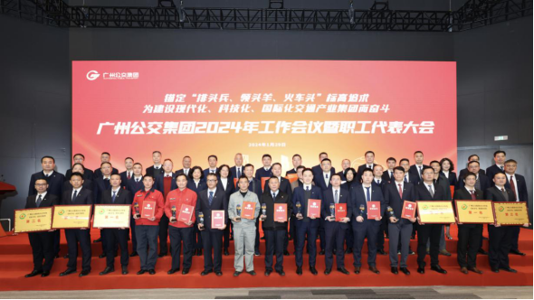 2024年1月29日,廣州公交集團(tuán)召開(kāi)2024年工作會(huì)議暨第一屆第七次職工代表大會(huì),總結(jié)工作、分析形勢(shì),部署2024年重點(diǎn)任務(wù)。市國(guó)資委市管一級(jí)調(diào)研員劉大才、市交通運(yùn)輸局市管一級(jí)調(diào)研員朱光、市國(guó)資委監(jiān)督處副處長(zhǎng)黃廣鑫、市交通運(yùn)輸局公共交通處四級(jí)調(diào)研員鄒立成應(yīng)邀出席,集團(tuán)領(lǐng)導(dǎo)班子成員、專職外部董事、審計(jì)專員辦、監(jiān)事會(huì)、高級(jí)管理人員、各部室正副職干部、各基層單位領(lǐng)導(dǎo)班子以及集團(tuán)各級(jí)人大代表、黨代表、政協(xié)委員、優(yōu)秀員工代表、2023年新員工代表及全體職工代表300多人參加了會(huì)議。