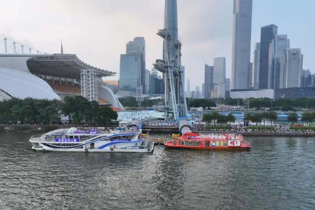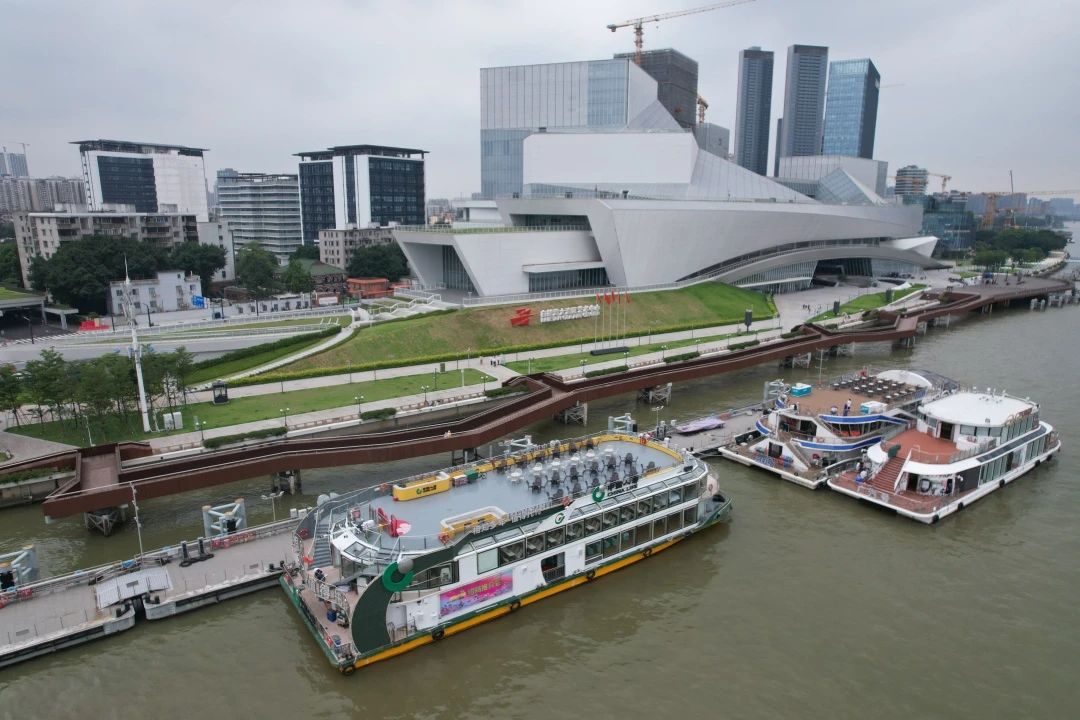 考察團一行乘坐全國首批交通強國項目純電游船“廣汽”號,沿珠江前航道自東向西調研,實地考察海心沙西區、中大、天字、西堤、白鵝潭藝術中心等碼頭的水岸融合業態,以及3條公交轉型日游航線。雙方圍繞文旅產業合作、產品共建、客源共享等方面展開深入交流,為未來合作描繪藍圖。