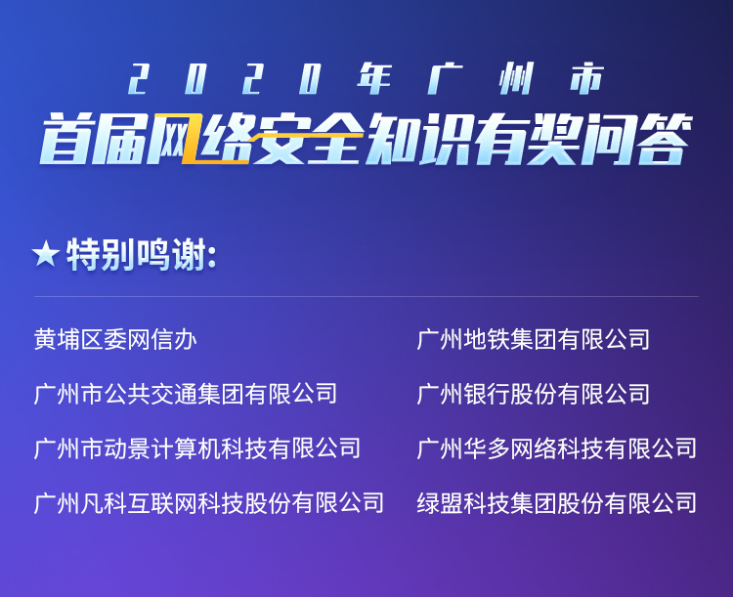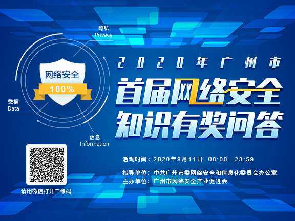 沒錯!就在今天,2020年廣州市首屆網絡安全知識有獎問答今天正式開賽啦!此次活動由中共廣州市委網絡安全和信息化委員會辦公室指導,廣州市網絡安全產業促進會主辦,旨在普及廣大網民網絡安全意識,了解和掌握網絡安全基本技能和法律制度,發動網民廣泛參與網絡安全宣傳教育活動,加強個人信息保護,提升全市網絡安全意識和防護技能,在全市營造網絡安全人人參與和學習的良好氛圍。