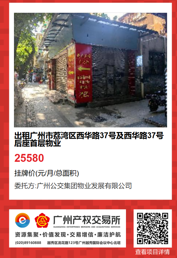 (一)項目名稱:出租廣州市荔灣區西華路37號及西華路37號后座首層物業。