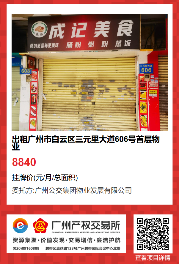 現有廣州市白云區三元里大道606號首層物業出租項目,該項目在廣州公有物業出租平臺網站自掛牌公開招租,歡迎有意向的企業法人或自然人(含個體工商戶)參加應租。現將有關事項說明如下: